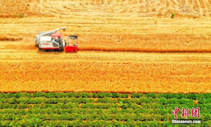 資料圖:收割機穿梭在麥田中,為農民豐收助力。劉浩 陳杰 攝