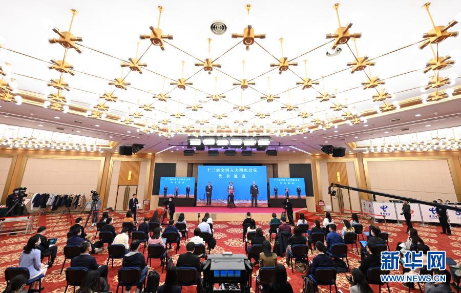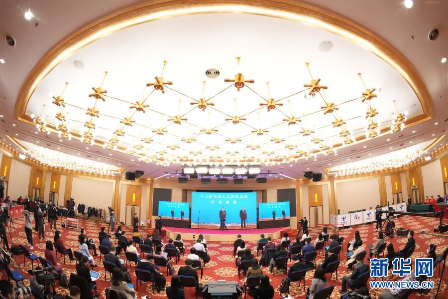 3月8日,第十三屆全國(guó)人民代表大會(huì)第四次會(huì)議舉行第二場(chǎng)“代表通道”采訪活動(dòng)。這是記者在分會(huì)場(chǎng)通過(guò)網(wǎng)絡(luò)視頻方式采訪。新華社記者 陳曄華 攝