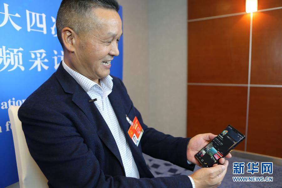 3月3日,全國人大代表、福建永泰縣希安油茶專業(yè)合作社負(fù)責(zé)人盧玉勝在駐地接受采訪時(shí)展示他為宣傳油茶開通的社交媒體賬號。新華社記者 吳雨 攝