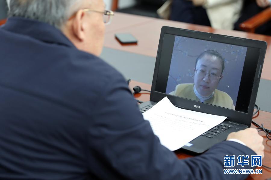 3月7日,全國人大代表、山東省泰安市農(nóng)科院食用菌研究所所長孔怡(屏幕畫面中)同農(nóng)業(yè)農(nóng)村部種業(yè)管理司副司長孫好勤在北京進(jìn)行網(wǎng)絡(luò)視頻連線。這是一次不尋常的兩會(huì)“速遞”:3月5日代表提出建議,3月6日建議經(jīng)國務(wù)院辦公廳轉(zhuǎn)到農(nóng)業(yè)農(nóng)村部,3月7日中午就實(shí)現(xiàn)了部門與代表的“云對話”。新華社記者 李木子 攝