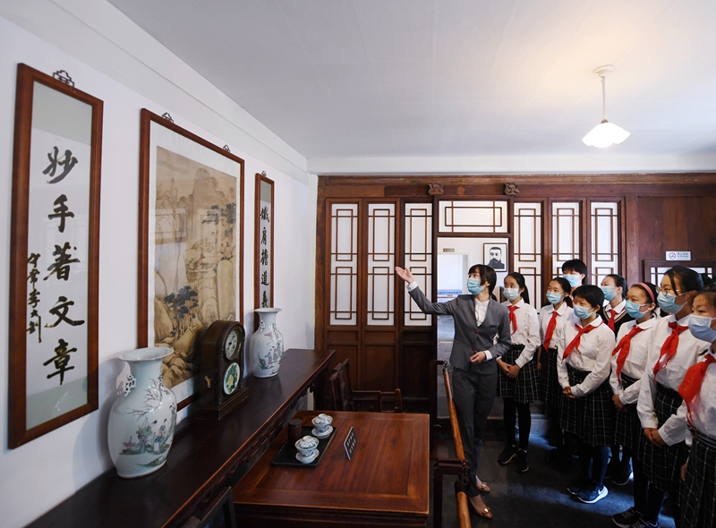 “南陳北李,相約建黨”,偉大建黨活動是偉大建黨精神形成的實(shí)踐基礎(chǔ)。近期,中國共產(chǎn)黨早期北京革命活動舊址正式面向社會公眾對外開放。本次集中開放的革命活動舊址包括北京李大釗故居、《新青年》編輯部舊址等。圖為講解員為前來參觀李大釗故居的學(xué)生做介紹。新華社記者 張晨霖/攝