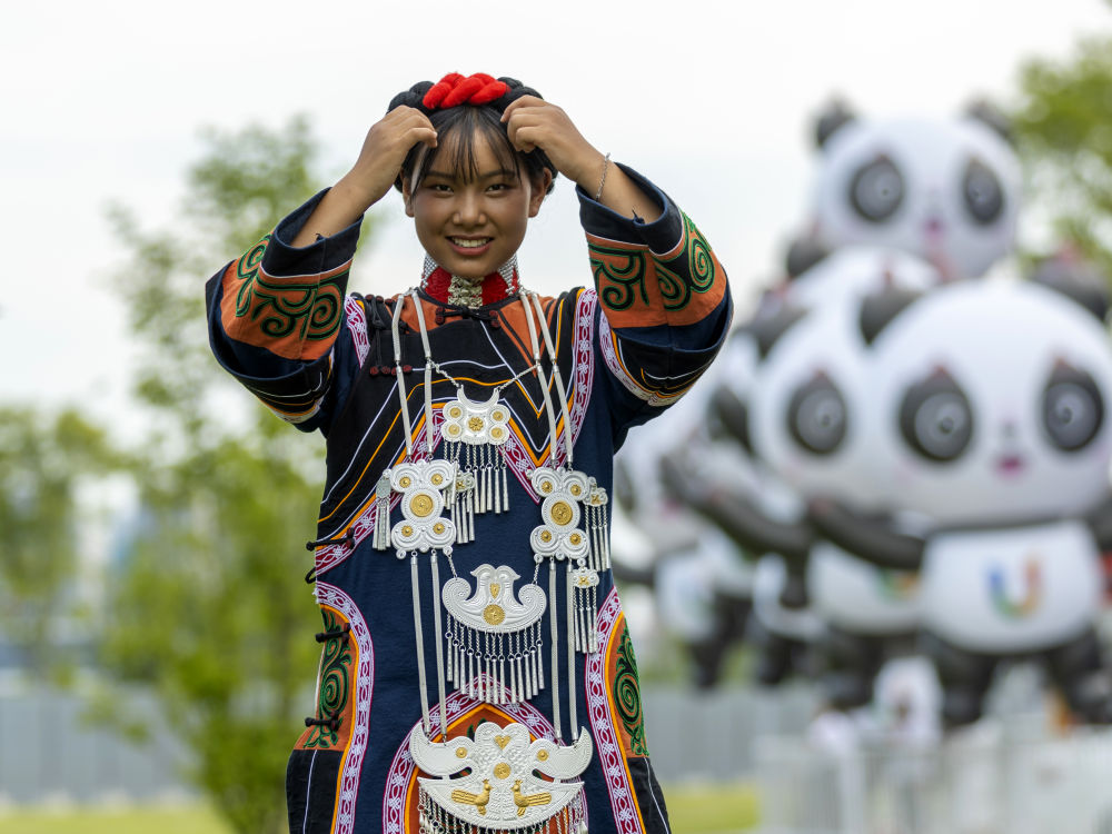 7月23日,準(zhǔn)備參加成都大運(yùn)會(huì)開(kāi)幕式彩排的吉好有果。新華社記者 沈伯韓 攝