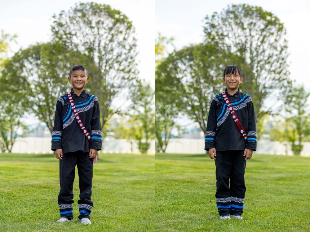 拼版照片:7月23日在成都大運(yùn)會(huì)開(kāi)幕式彩排之前拍攝的馬杰英(左)、吉合拉作和俄地惹漢(右)。新華社記者沈伯韓 攝